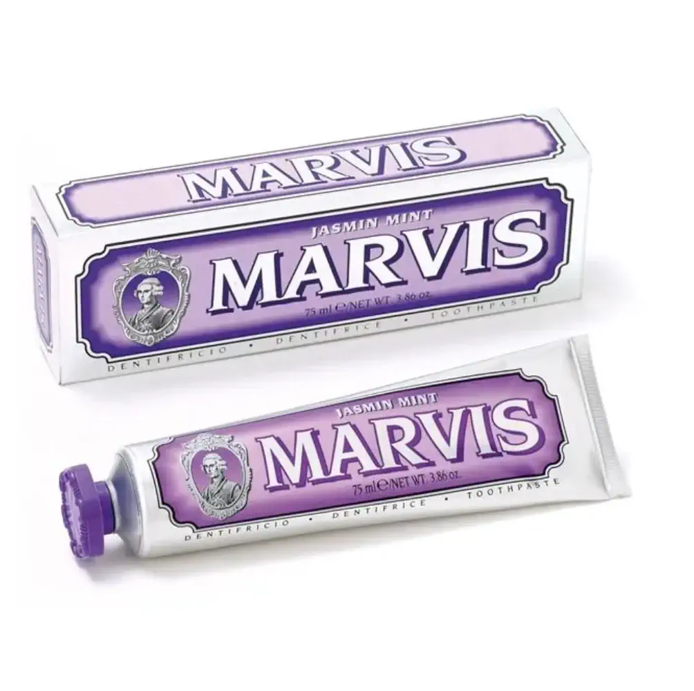 خمیر دندان مارویس مدل یاس و نعناع | Marvis Jasmin Mint Toothpaste محصولی لوکس از ایتالیا است که با ترکیب رایحهی دلنشین یاس و طراوت نعناع، تجربهای متفاوت در بهداشت دهان و دندان ایجاد میکند. این خمیر دندان با فرمولاسیون حاوی فلوراید و زایلیتول، علاوه بر محافظت از دندانها در برابر پوسیدگی، پلاکها را بهطور موثر پاک کرده و حس تازگی طولانیمدت در دهان به جا میگذارد. طراحی شیک و خاص بستهبندی آن، انتخابی ایدهآل برای افرادی است که به سلامت و زیبایی لبخند خود اهمیت میدهند.