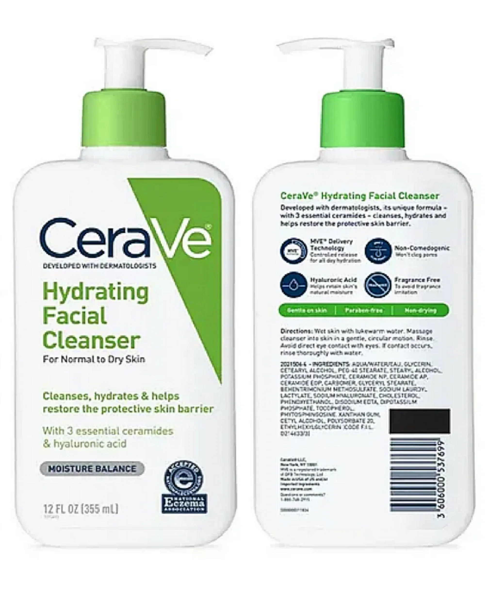 https://www.cerave.com/skincare/cleansers/hydrating-facial-cleanser - Lynde CW. Moisturizers: What They Are and a Practical Approach to Product Selection. Skin Therapy Lett. 2001;6(13):3-5.