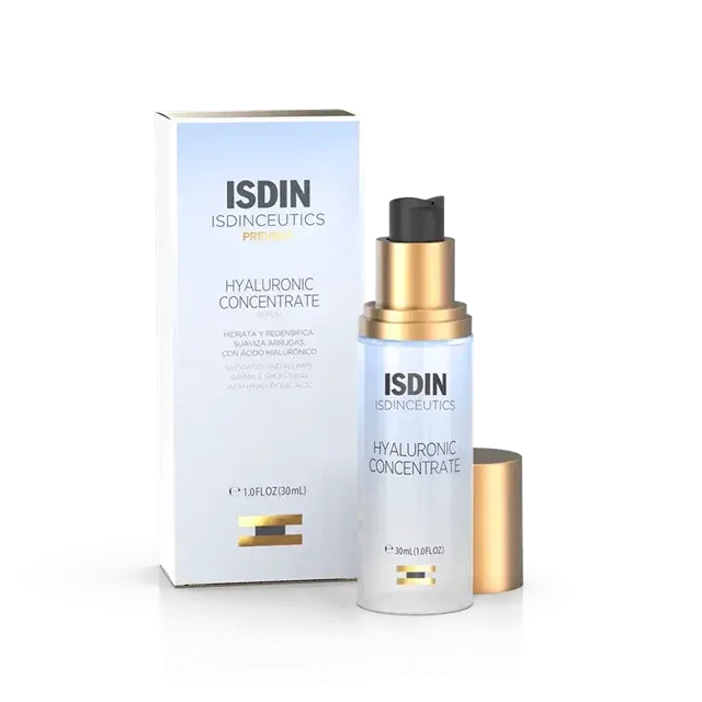 - ISDINCEUTICS Hyaluronic Concentrate: آبرسانی عمیق، تقویت سد پوستی، افزایش الاستیسیته، مناسب پوست خشک و نرمال.